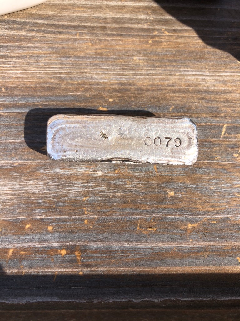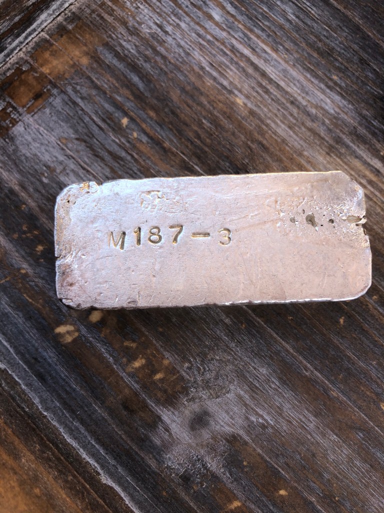 Next is a Mehlos Refinery ingot. Classic old pour style.