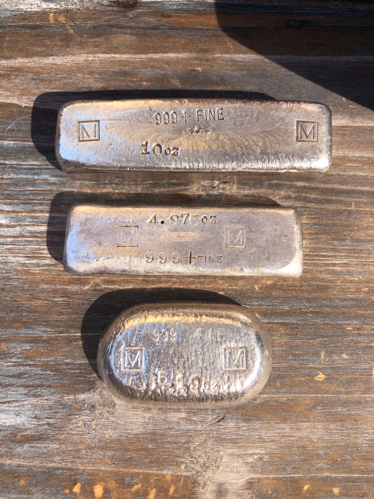 Next up is an MSR ingot, a nice old pour with picture frame on both the 5 and 10 oz. Not an easy bar to find, particularly in 5 oz.