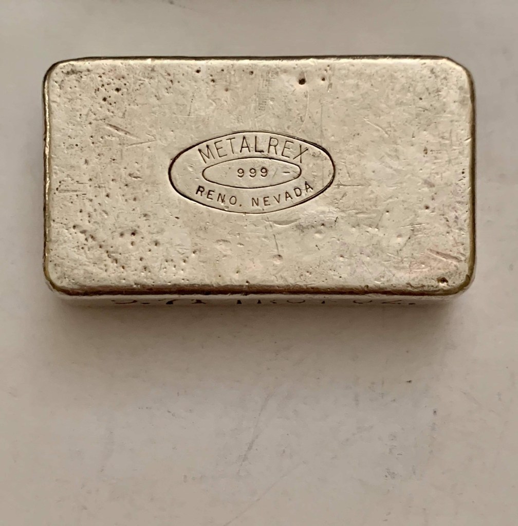 Something about ingots from Nevada. The state has a rich mining history and many collectible ingots have come from this area of the country. I’ve always been a big fan of Metalrex ingots, out of Reno, NV. They came in sizes ranging from 1+0z (very scarce) to 25+ oz. They are not common by any means and have become very sought after by serious collectors. Below are a few from my collection.