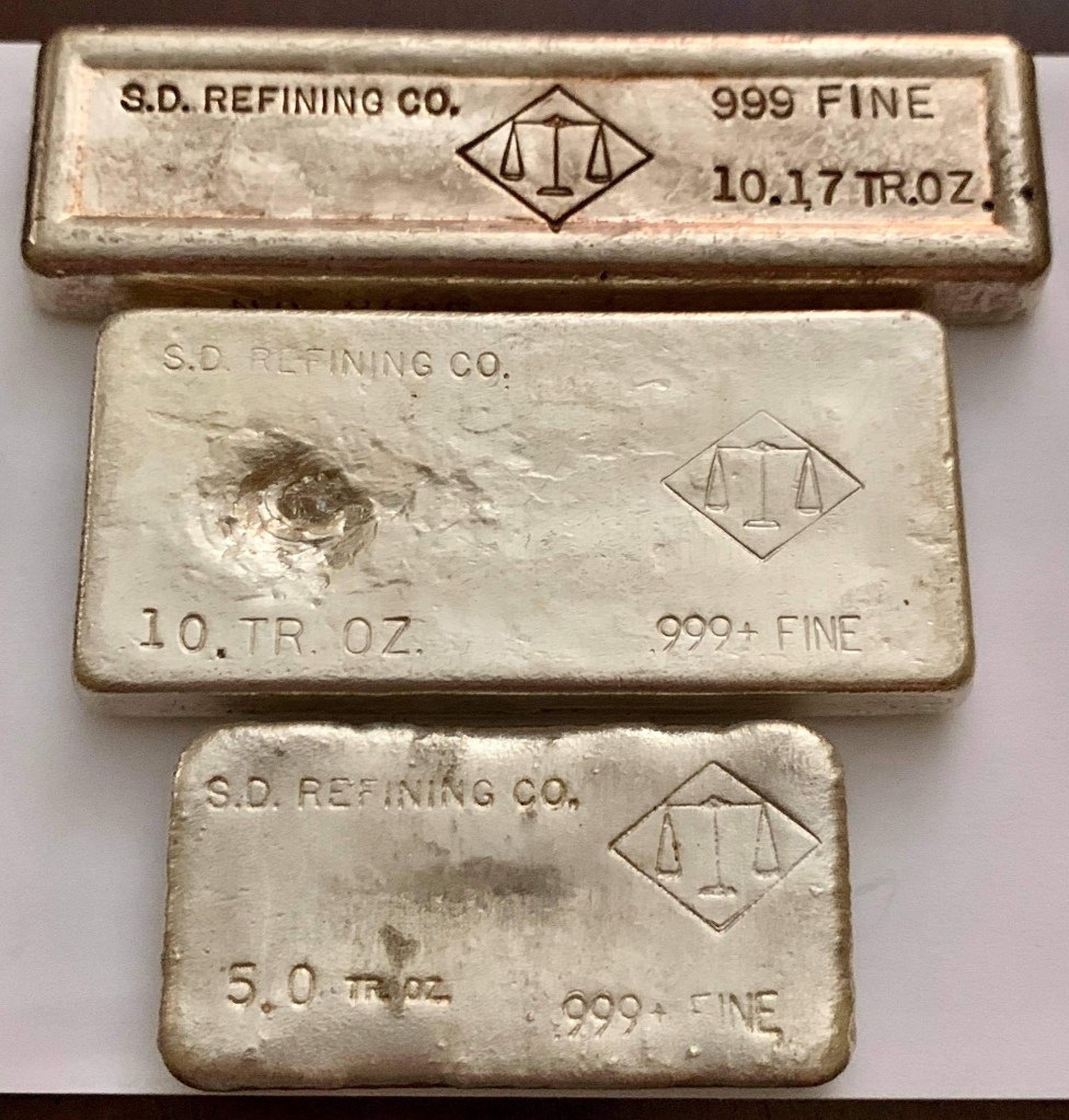 Tri-State did pressed and poured bars in sizes of 1, 5, and 10+ oz. Here are a few from my collection and Brian Rs collection.