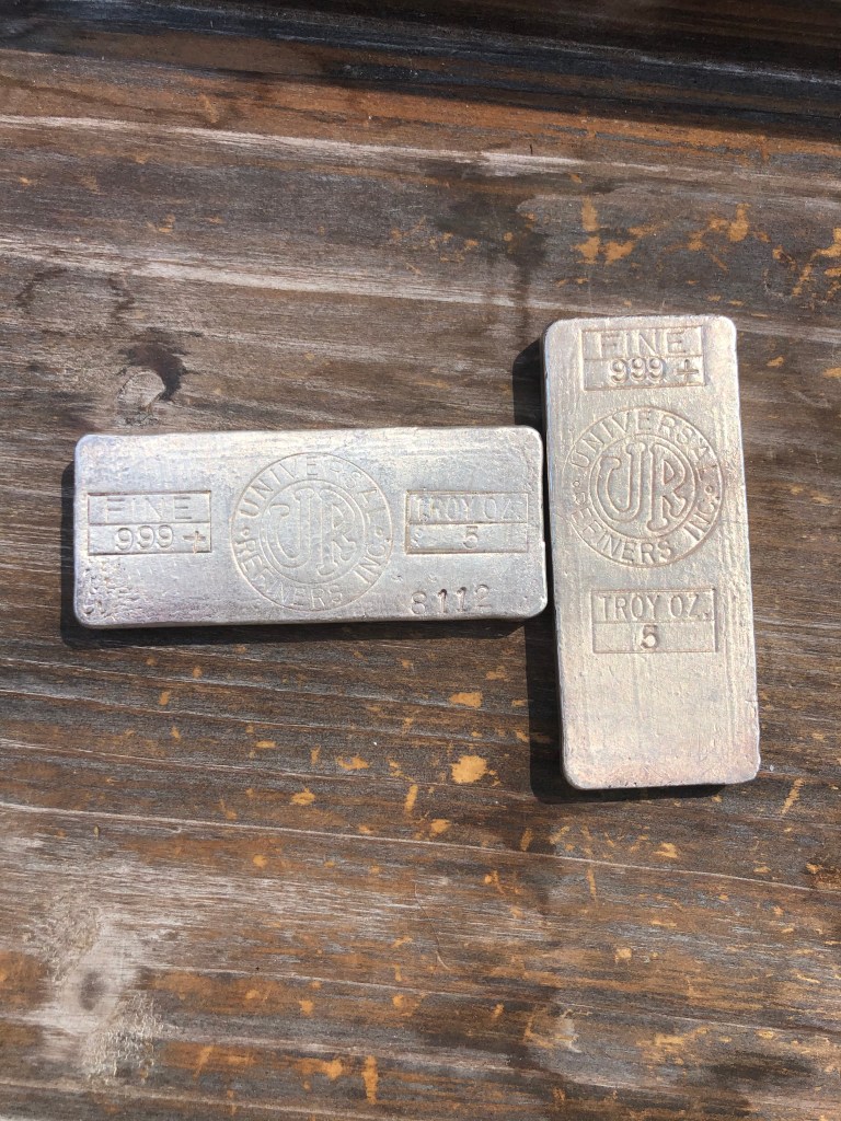 These truly are some of my favorite 5 oz pieces. Universal Refiners ingots are extremely hard to come by. They almost never come up. There are two varieties, both of which came from Ken Conaway’s collection. Very fortunate to have these.