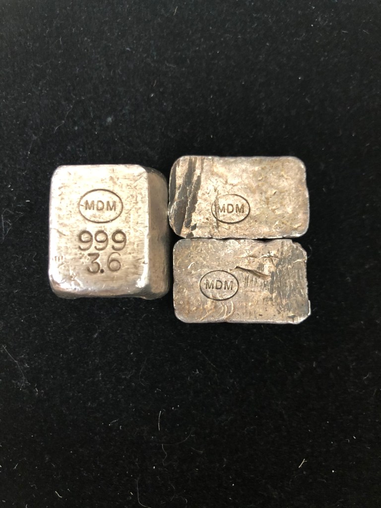 MMM Colorado are sought after pieces, however, very little information about this old refiner has been uncovered. The first gens only come with an MMM Stamp and typically are sub 5 oz. Later varieties, assuming they are related and the same refiner, have the MMM with the Colorado stamp. These range from sub 3 oz up to 10 oz from what I’ve seen. Looking for more information on these.