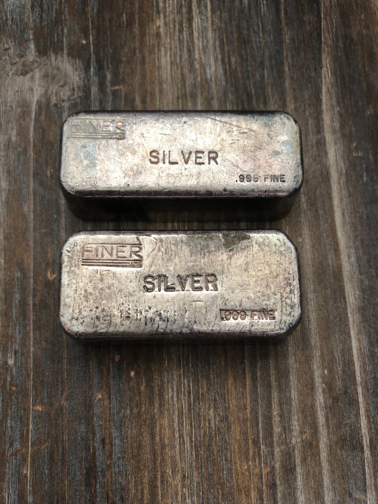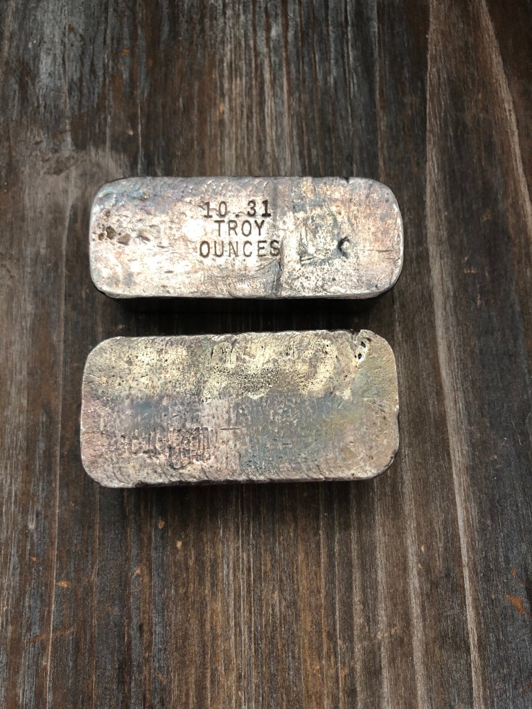 I have been digging for awhile on Finer ingots with no success. I’m in love with these bars and fortunate to own a few different examples. If anyone has more information on these, please send me an email at silverblogger@vintagepouredbar.com. These are very high premium pieces and tend to tone up very nicely. All of them have great color.